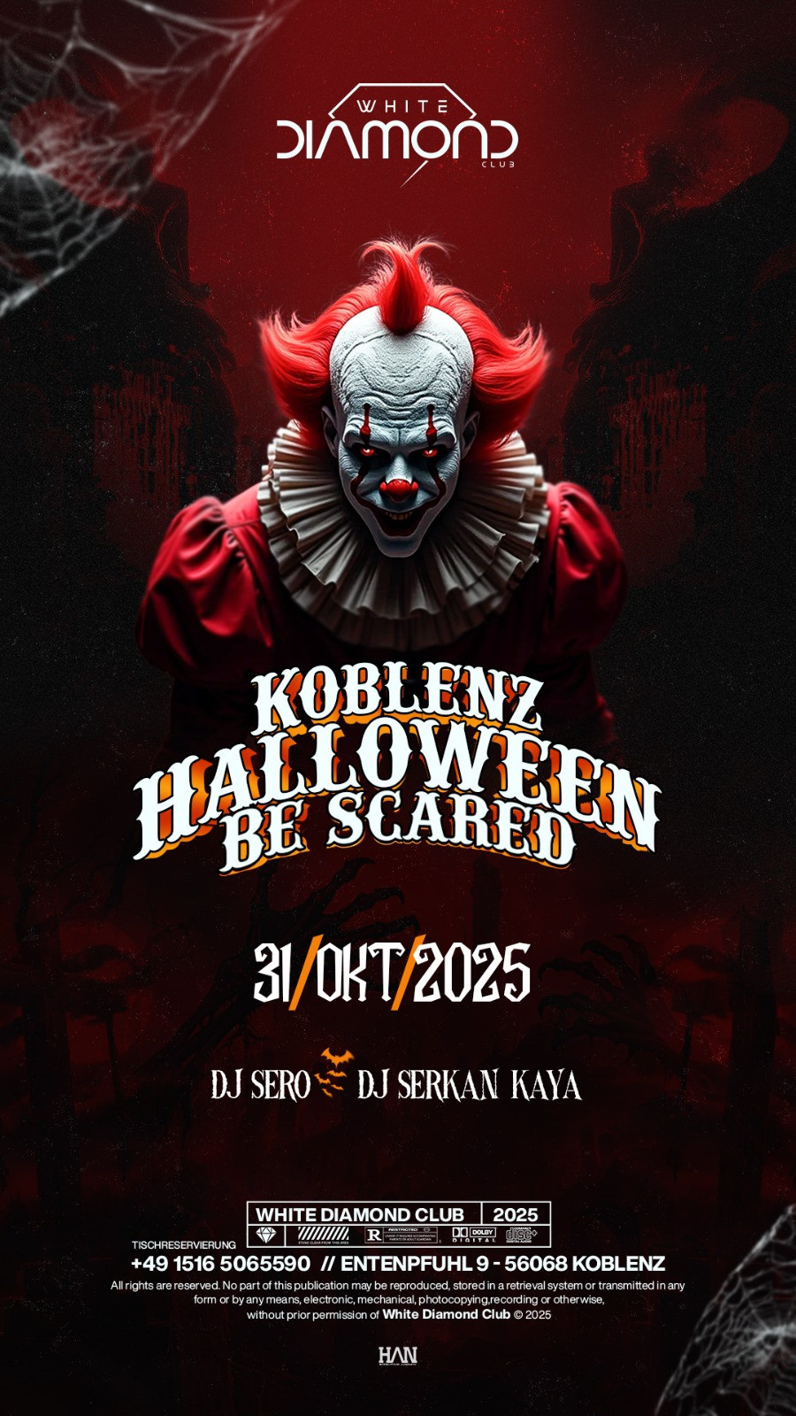 Tritt ein in White Diamond Goes Halloween🎃– wo weiße Anzüge sich winden wie Leichentücher,👻wo jeder Schatten ein Gast ist. Bass so tief, er schläft nie ein.👻Und wenn die Kürbislampen aus sind, tanzt nicht nur dein Körper… Sondern das, was drin steckt. Komm allein. Geh nicht allein. Reservier jetzt, bevor sie dich finden 🎃